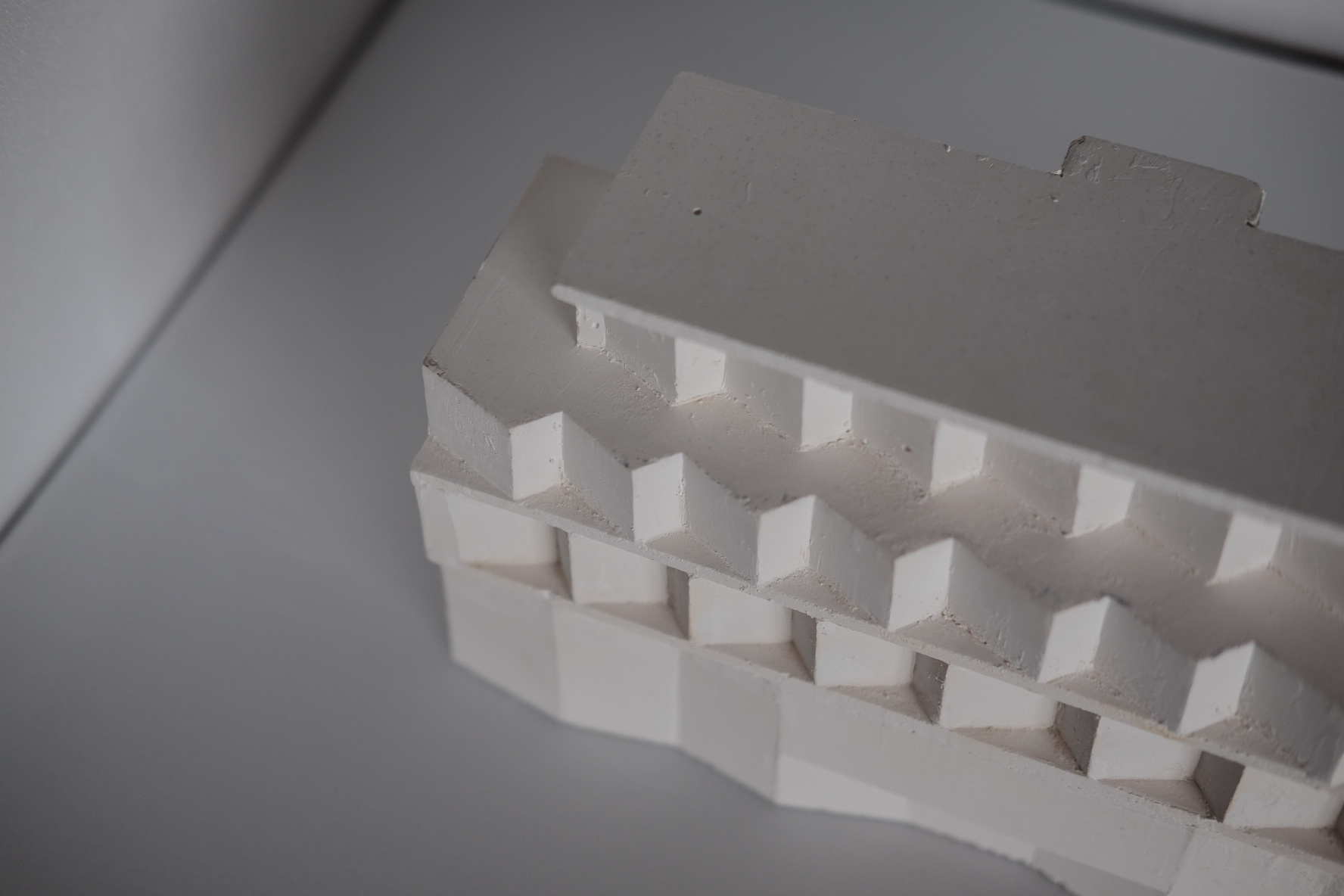 Макет очень хорошо дает возможность прочувствовать объем здания, увидеть слабые стороны проекта, по новому взглянуть на проект. Макет заливался из гипса. Сначала мы построили опалубку из пенополистирола и внутрь заливали гипс. Это оказалось достаточно трудозатратной процедурой, но социальный результат превзошел все ожидания.