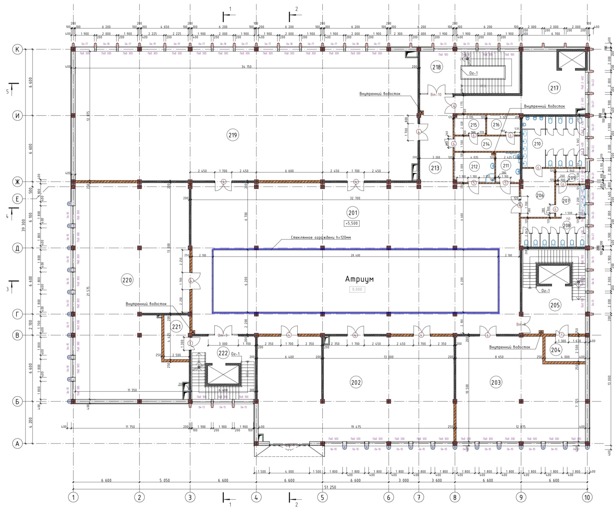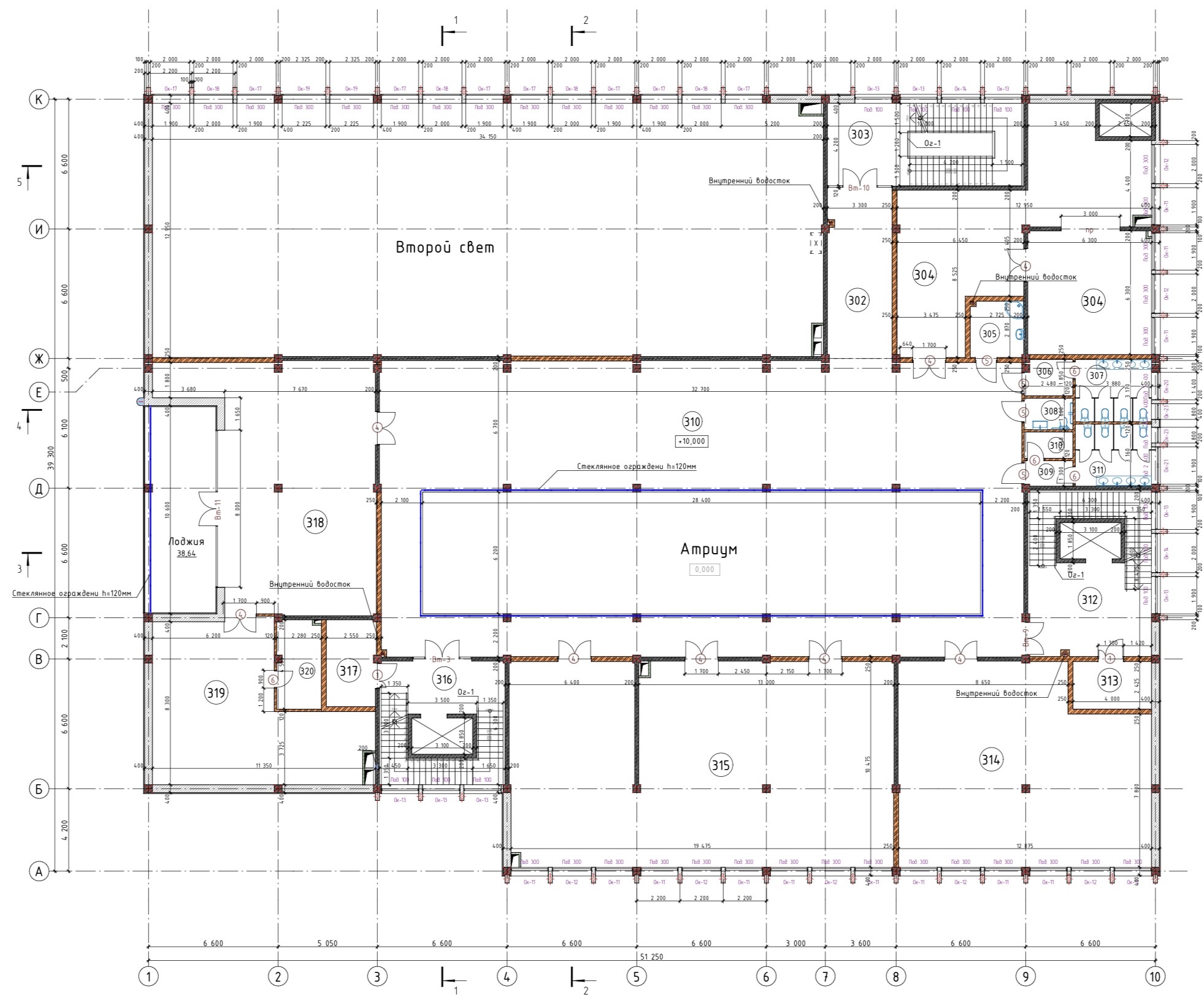 Сложность и уникальность проекта заключалась в наличии атриума, который объединяет все этажи с уровня первого этажа, при этом усложняет с точки зрения пожарной безопасности. Для этого специально был разработан отдельный, дополнительный раздел, позволяющий обеспечить пожарную безопасность.
