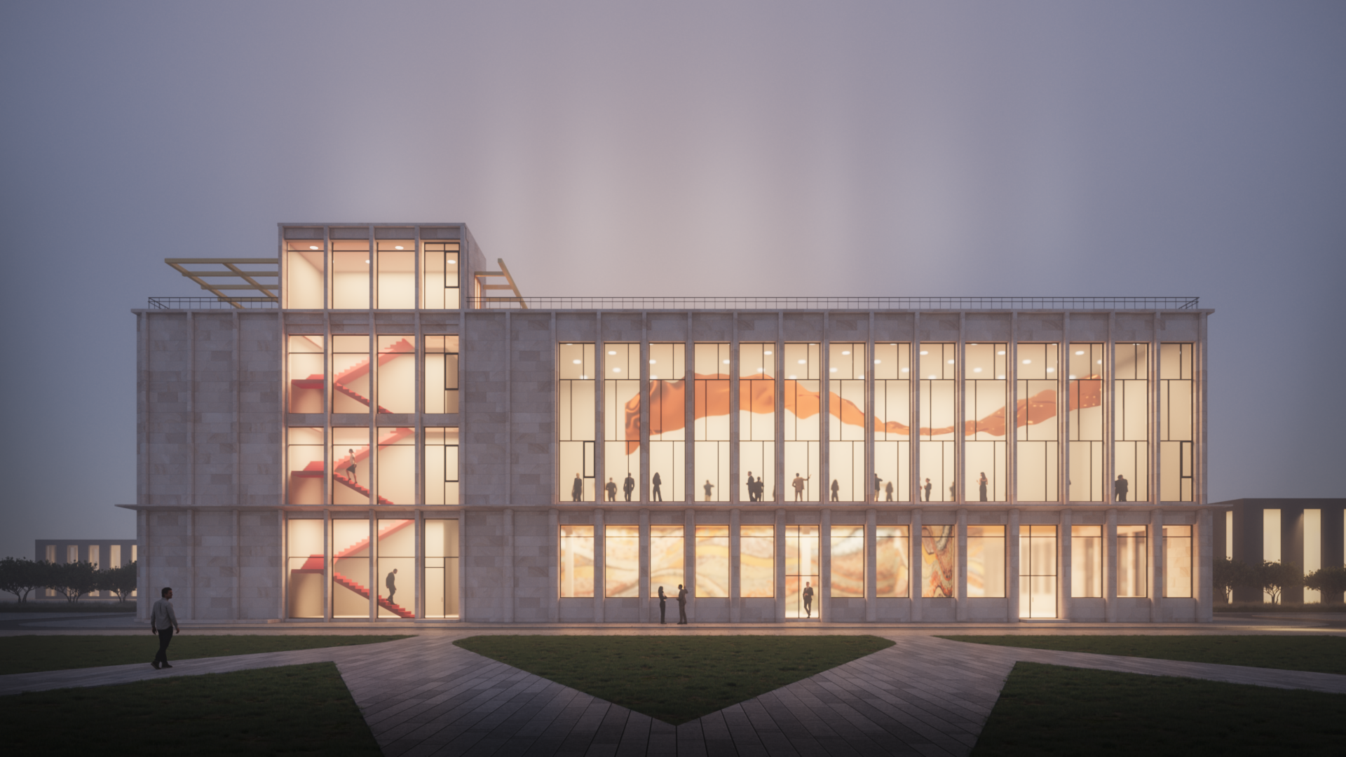 Центр рассчитан на большое количество гостей, с разным функциональным направлением. Конференц-зал, коворкинг, офисные пространства, кофе-зона, зона-отдыха. Все условия для работы над различными типами задач и мероприятий.